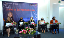 Las panelistas fueron: Elvia Alicia Jaime García, presidenta de Mujeres Empresarias de Aguascalientes (MEMAC); Josefina Cruz Ramírez directora de Jo-Cruz Espectáculos; Karime Aceves Chávez, directora financiera de Grupo Tekkzu, Lucía Viridiana González Rebeles y Karla Cecilia Acevedo Moreno, ambas emprendedoras de la UPA, quienes compartieron sus experiencias en materia de emprendimiento a las participantes.