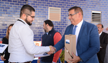 Con el objetivo de impulsar la excelencia educativa y el desarrollo profesional de los trabajadores aguascalentenses, el rector de la Universidad Politécnica de Aguascalientes (UPA), Luis Carlos Ibarra Tejeda entregó 44 diplomas a profesionistas de la empresa Frio Express que concluyeron con gran éxito el Diplomado en Logística Internacional que impartió la institución, o asistieron a alguno de sus módulos.